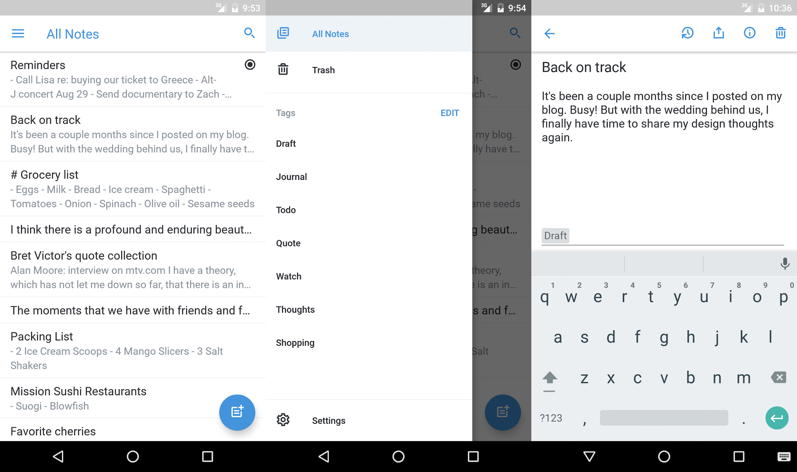 Les notes créées dans Simplenote sont instantanément synchronisées entre différents appareils. En plus de Windows et de Linux, Simplenote est disponible sur les Mac, les appareils iOS et via un navigateur de bureau.